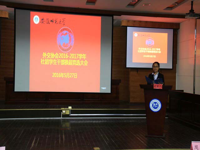 大会在主持人热情饱满的开场白下,拉开序幕。大会共有七项议程。第一项,全体起立,奏唱校歌;第二项,会长周小凡上台致辞。周小凡首先回顾了社团的成长步伐,她说外交协会取得的成绩离不开大家的共同努力,在此向大家表示感谢。其次,她希望下届社团学生干部们能够更加出彩。第三项,播放社团精心制作的PPT微视频。视频从各部门的成员介绍,到社团集体努力举办的精品活动,再到我们一起参加过的联谊活动,其中包含了暖暖的温馨,社团就像一个大家庭,把我们聚在一起。第四项,李路根为四位优秀理事颁发纪念品,社团在前段时间校社联举办的社团技能大赛中,首次参赛并在全校60多个社团中位列17名,在bet36365路检测中心三大社团中成绩排名第一,这些离不开四位理事的辛勤准备。第五项,候选人参选汇报正式开始。选手按照事先抽签顺序依次上台演讲并进行答辩,选手们的精彩表演,引起了台下阵阵掌声,充分展现了外交协会学生干部昂扬的精神面貌。