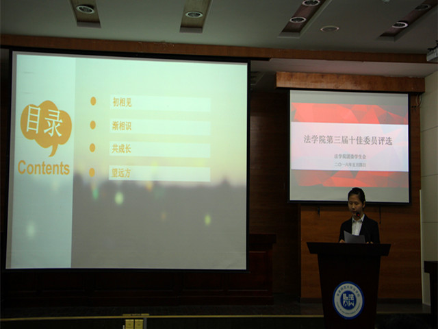 在参赛委员们演讲完毕后,各位评委根据委员的平时表现、基本素质、汇报内容、语言表达、综合印象五个方面进行评分,同时,现场观众也可投票选出十位表现较好的参赛委员。最后,主持人宣布评选活动结束,所有评委和参赛人员都上台进行合影留念。
