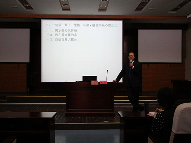 讲座上,赵平老师主要就大学宿舍关系的价值与呵护艺术做出分析。在寝室同学关系的价值上,赵老师分为人的本质、人际资本两个方面,从形上考量和形下考问的不同角度解读宿舍人际关系的心理意义和人才意义。他强调,大学宿舍关系不仅是丰富个性大讲台,更是自我成就展示台、人才浮出PK台。接下来,他按照现今大学生宿舍关系的现状、种类、问题归因和问题消解的顺序一一阐述讲解。他认为,大学宿舍关系是人际关系的重要组成部分,不管是个体关系还是群体关系,沟通都是解除障碍的直接要素,心理咨询也是明智的选择。同时,他也就沟通的技巧提出几条合理可行的建议。讲座的整个过程中,赵平老师以丰富生动的语言给同学们带来了一场强劲的心理上的风暴。同学们纷纷表示受益匪浅。
