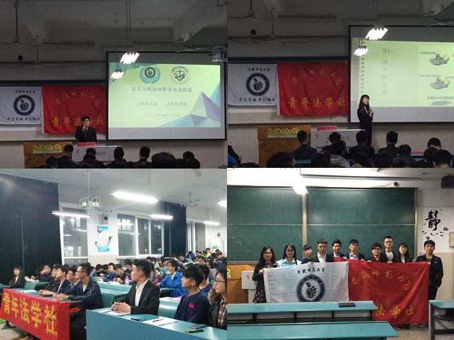 为了增加软件工程专业同学们对法律知识的了解,4月24日晚上7点半,青法社的学生干部在2030202教室,向15级软件工程专业的同学们普及法律知识。