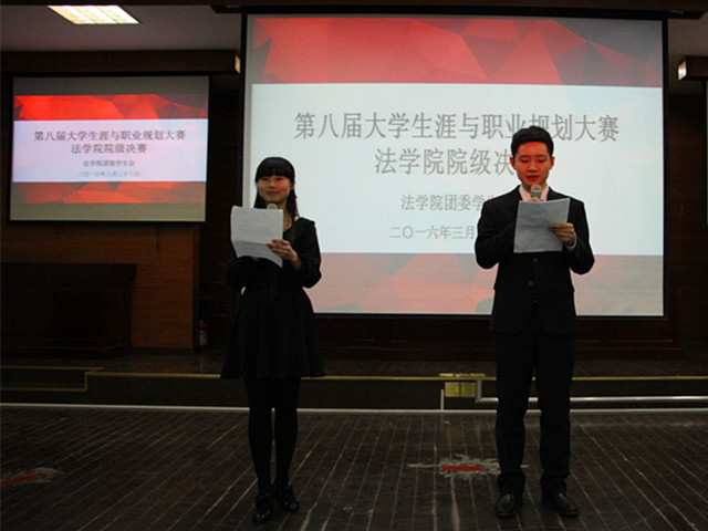 规划精彩人生,创造锦绣前程。3月23日晚,bet36365路检测中心在模拟法庭成功举办了校第八届“精锐教育杯”大学生涯与职业规划大赛院内决赛。bet36365路检测中心教师邓劲松、陈鹏、bet36365路检测中心团委书记兼15级法学专业辅导员王虹圆以及各年级辅导员受邀担任评委。14级法学专业张继婷和佘荣臻同学主持本次比赛。