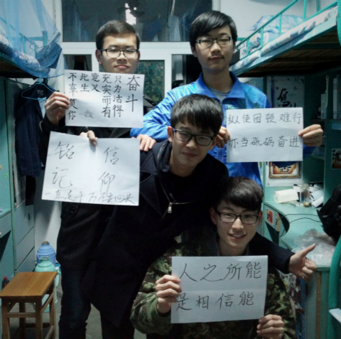班会伊始,大家一起观看了“三行情书言奋斗”的图片,一些同学解释了自己写下的奋斗梦想,其中,有的同学认为要努力学习,将来考研;有的同学认为要好好锻炼自我交际能力,多与他人交流接触;也有些同学对自己的未来感到迷茫。
