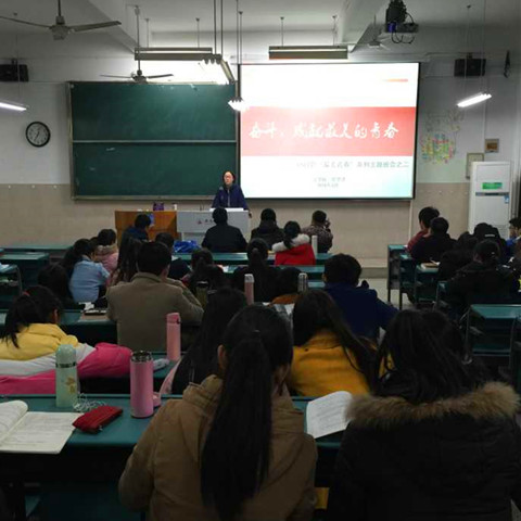 3月10日晚,15级行政管理班级在教室2020303举行“奋斗,为最美的青春”主题班会,班会由辅导员瞿津津主持,全体同学参加。
