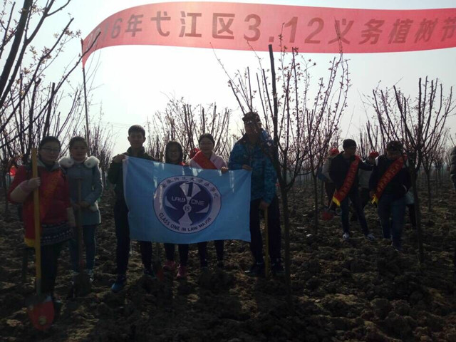 三月是一个充满生机和希望的季节。面对日益恶化的环境、污浊的空气。法学一班的同学们在学院的组织下参加了弋江区3.12义务植树节,为地球母亲贡献一份微薄的力量。