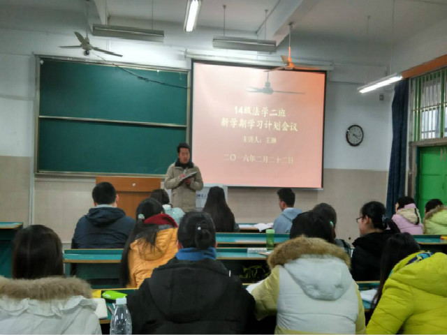 2月22号下午四点,14级法学专业辅导员王琳于2040403教室召开法学二班新学期学习计划会议,此次会议旨在帮助同学们明确学习目标、做好学习规划、了解学生工作。