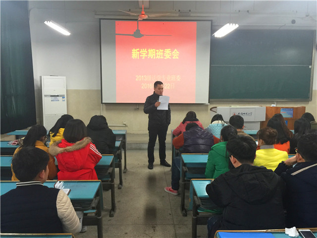 2月22日下午三点半,2013级法学专业在教室2010306召开新学期班委会。本次班会由13法学辅导员陈兴宇主持,13法学全体班委参加了此次会议。