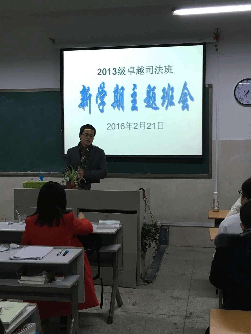 2016年2月21日晚,2013级卓越司法班在专用教室召开新学期主题班会,全班同学参加,班会由辅导员陈银珠老师主持。