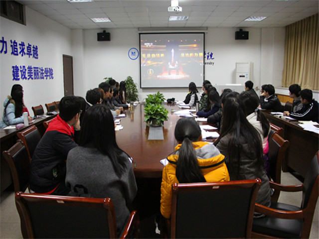 12月4日晚8时,院党委副书记屈光峰、团委书记王虹圆在行政楼四楼会议室,集中带领团学学生骨干观看和学习2015年度法治人物颁奖典礼。