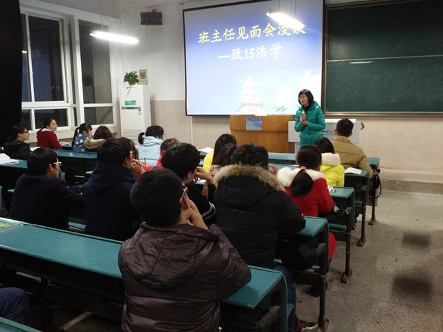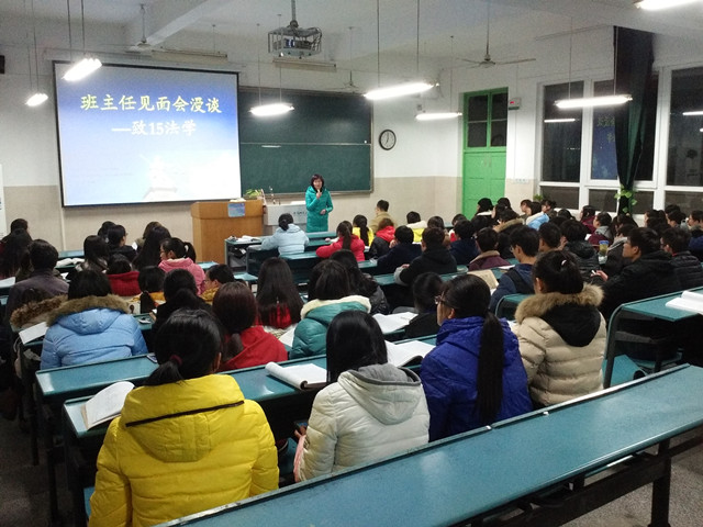 班主任见面会由班长主持,15法学一班全体同学参加,共分为三个环节,先是班主任主讲有关专业指导的内容,再分享她学习和生活的经历,最后由同学们提问班主任来解答。