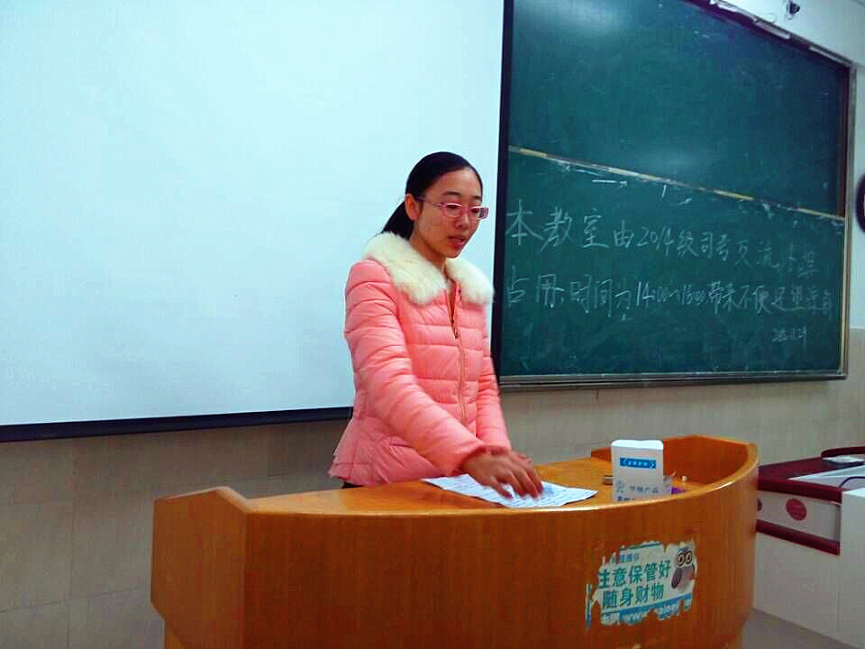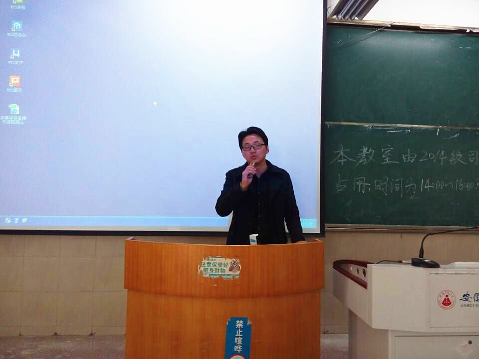 为了让同学们进一步接触司考,感受司考,2015年11月29日下午2点于2020104教室举行司法考试交流会。本次交流会由司考小组负责人方彬彬组织召开,受邀参加交流会的有2012级法学专业姚俊学长以及左霞、凡如玉、蒋静三位学姐。