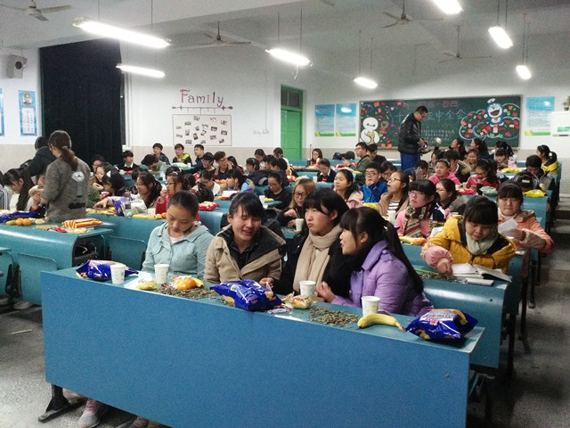 班级party由班长副班长主持,共分为三个环节。先是由班干分发水果、零食、和饮料,有橘子、香蕉、薯片、小饼干、小面包、糖果、瓜子、雪碧、果汁、奶茶等等。然后全班观看一部励志短片,最后是气氛非常活跃的游戏环节。