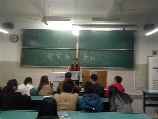 会议首先班长葛琪琪明确了宿舍长的职责,要求宿舍长在遵守校纪、严格自身的前提下,团结宿舍同学,合理有序的组织好自身工作,及时传达辅导员和班委的各项通知,做好班委会和同学们的桥梁纽带作用。同时各个班委也将近段时间所反映的问题交代给寝室长,要求寝室长团结室友积极完成基本工作。随后,各个寝室长对于寝室的问题进行交流讨论,大家都表示会积极配合班级工作。