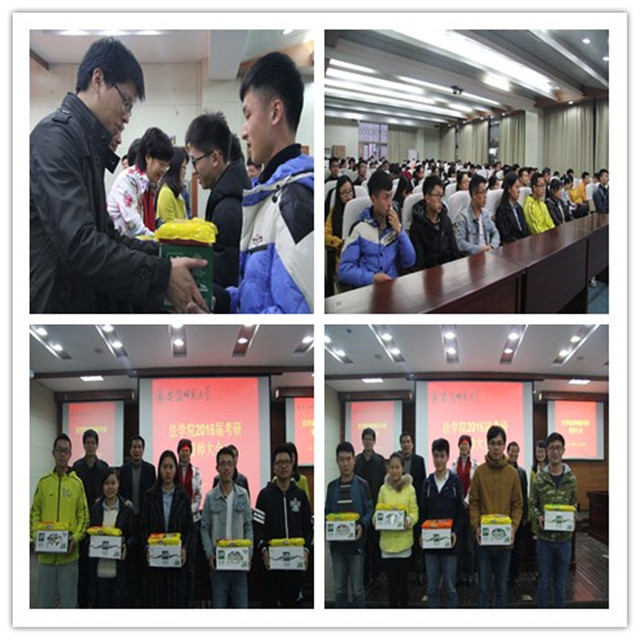 首先,屈光峰在对备考的同学提出了三点要求,一是安全问题,强化管理,严格排查,力求保证同学们在校内的安全;二是自我防范意识,对于电信诈骗、防盗防火等方面要提高自我防范意识;三是机遇意识,提醒同学们做好认清就业形势,把握好机遇。随后,彭凤莲结合考研真实的事例与同学们做了深入的交流。她强调考研是正确的选择、考研胜在坚持到底、考研也要注意答题技巧;考研是一种难得的经历,不要轻言放弃,不要怕吃苦,要记住“莫道君行早,更有早行君”;彭老师还就研究生考试复试的准备工作上提出了不少建议。她鼓励同学们快乐考研、坚持考研、胜利考研!