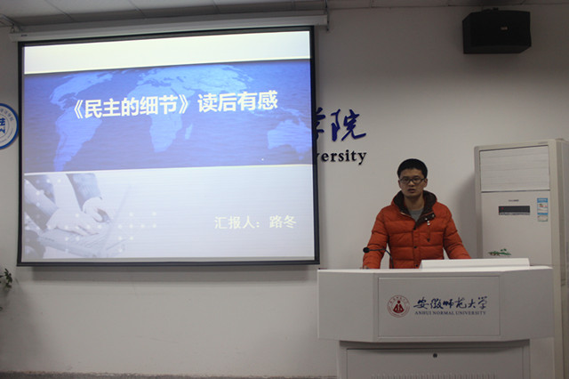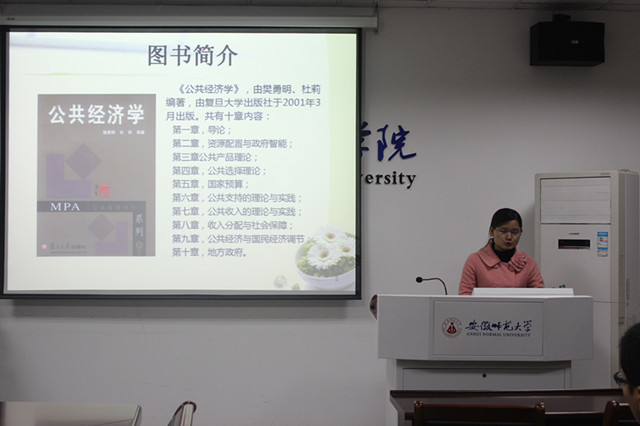 首先,主持人介绍了来宾及评分细则,接着李雲、路冬等五位同学依次发言。李雲同学就《公共经济学》一书谈了自己的认识。她从公共选择与非市场决策、政治学与经济学的桥梁、投票机制和中位选民、公共选择中的利益集团、官僚和政府膨胀、政治经济周期和政府失败等几个方面,讲述了公共经济学的基本理论,并依此从行政决策的民主化、行政决策的科学化、我国人民代表大会制度的发展完善三个角度浅析了当代中国决策的科学化和民主化,就公共选择理论的现实意义谈了谈自己的看法。路冬同学选择刘瑜的《民主的细节》谈了谈自己的读后感。路冬从刘瑜简介、媒体对刘瑜评价、本书的独到之处与不足、读《民主的细节》的主要收获分析了作者及书本,由此引申出他对美国民主的思考:美国固然是民主的国度,然而美国的民主也是存在缺陷的。某种社会制度是一定的历史、文化和地缘的产物,不可能相互替代和照搬,世界上没有完美的制度。王伟同学热爱研究农村问题,故选择费孝通先生的《乡土中国》。他以读《乡土中国》,浅谈“乡土社会“,现代化进程中“蜕化”与“退化”为题从现代化进程中“乡土本色”进步、现代化进程中“农村语言文字”发展、现代化进程中“团体格局”变化、法治化进程中“秩序规范”转变以及民主进程中“男女平等”深入五个角度探讨了农村的“蜕化”;随后,从现代乡土社会之道德退化和民族语言文化遗失两个方面谈了谈对乡土社会“退化”的看法。张继安谈的是《人性的弱点》中交往技巧的领悟。他从与人相处的基本技巧、如何使人喜欢你、赢得他人赞同的五种方法、如何在与人交往中变得更快乐、如何不被别人的批评所伤害五个方面逐层递进,表述了自己的观点:不要在意别人的批评、要学会自我反思。庞明稳从卢梭的《社会契约论》中汲取灵感,简要谈了我国政府信任危机成因、西方国家应对政府危机经验介绍、信任危机应对措施:建设法治政府、诚信政府、服务型政府,最后得出结论:利用大众传媒来搭建政府和民众利益诉求的桥梁。