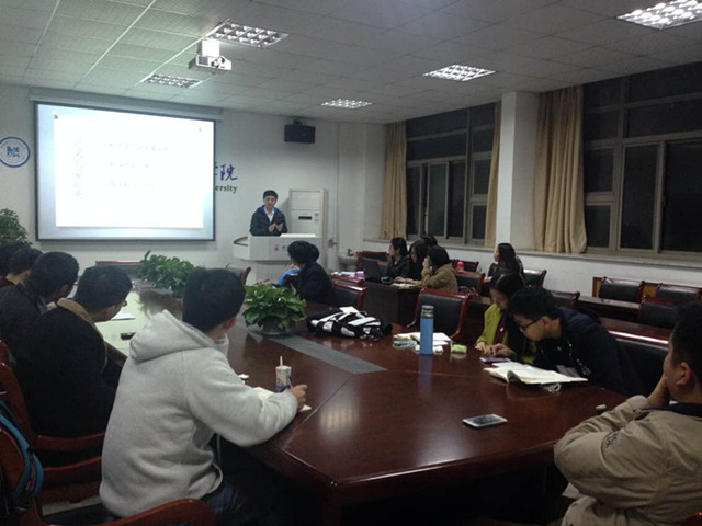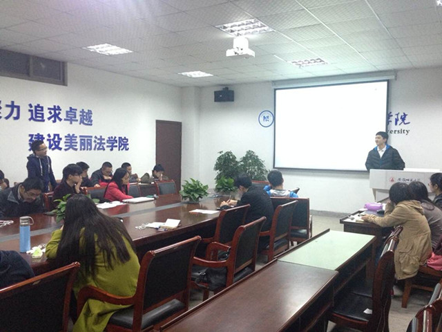 2015年11月22日,14级卓越司法班在bet36365路检测中心行政楼召开本学期第五次读书交流会,14级卓越司法班部分同学参加,法学专业辅导员王琳担任此次读书交流会的主持人。