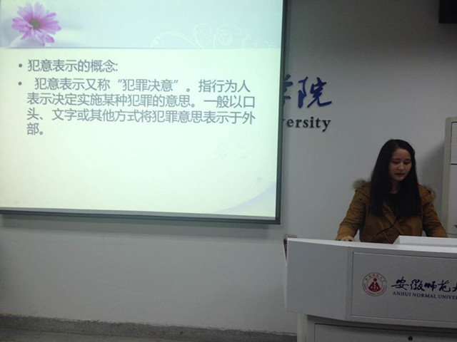 交流会的开始,是“犯罪与刑罚”小组的曹敏同学主讲,她主讲的主题为犯意表示,她主要是从贝卡利亚的观点——犯意需要被处以刑罚,比照既遂犯适用较轻的刑罚的观点延伸,之后,她阐述了犯意表示是否对外界造成影响、犯意表示是否具有社会危害性、犯意表示是否被置罪配刑三个问题,比较全面的让大家了解了犯意表示;然后是“政法笔记”小组的胡博文同学,他通过日常生活中和他人的讨论以及卡尔维诺的一则寓言《黑羊》作为引子,向大家抛出了什么是正义这个问题,他同样通过什么是正义的蒙眼布、程序的利与弊以及我国程序法现状来讲解,引起大家对于正义与善良、情与法之间关系的广泛讨论;其他两组主讲人由于客观原因未能上台报告。