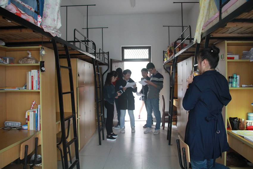 这次卫生检查覆盖bet36365路检测中心研究生共26个寝室,生活实践部还为此“量身定做”了一份详尽的《卫生检查打分具体标准》,内容包括宿舍仪容、地面、门窗、天花板与墙壁、床铺整理、桌面及物品、阳台、卫生间和安全用电共七个大项若干个小项,涉及寝室的方方面面。下午两点半,卫生检查工作小组在49栋楼下集合,首先由研究生会主席王凤婷带领大家认真学习了标准,之后生活实践部部长于典强调了检查过程中的注意事项,如进门前敲门、离开时道谢等等。在领取打分表后,工作小组依次去12栋、49栋、48栋进行检查。下午五点半,所有寝室卫生安全检查完毕。