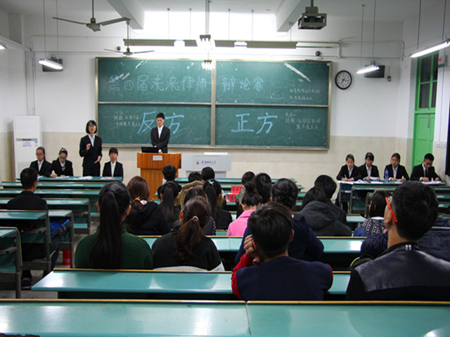经过初赛和复赛的选拔,共有4支队伍进入半决赛。它们分别是13法学二班、14法学一班、14法学二班、15法学一班。本次半决赛围绕“法律应不应当调整恋爱关系”、“迟来的正义是不是正义”两个辩题分别进行两场辩论。赛场上,辩手们落落大方,有条不紊的阐述己方观点,并针对对手陈述的观点一一进行辩驳。双方辩手在激烈的你来我往间,一次次将比赛引向高潮,现场掌声雷动,喝彩不断。赛后,潘雪松针对比赛状况做出点评,并向给观众带来如此精彩辩论的选手们表示感谢与赞赏。本次半决赛中,13法学二班和14法学二班表现突出并顺利晋级决赛。其中,冯玲、李剑锋同学分别获得两场辩论赛的最佳辩手称号。