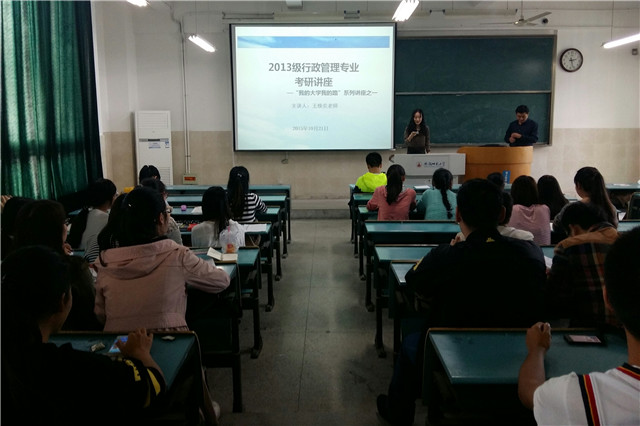 10月21日下午,2013级行政管理专业在2010304教室举行了“我的大学我的路”系列讲座第一场——考研知识讲座。王焕炎老师担任本次讲座主讲人。