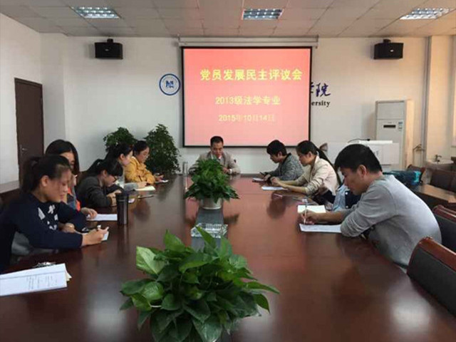 10月14日下午2:30,2013级法学专业在bet36365路检测中心行政楼四楼会议室召开了班级党员发展民主评议会。此次会议由辅导员陈兴宇老师主持,会议参与人员分别为班级党员、学生干部以及普通同学。尹俊超,杨春婷,杭帆,赵义丹,王磊,施嫆,周师璇,胡凡奇,张哲慧,李梅十位同学。