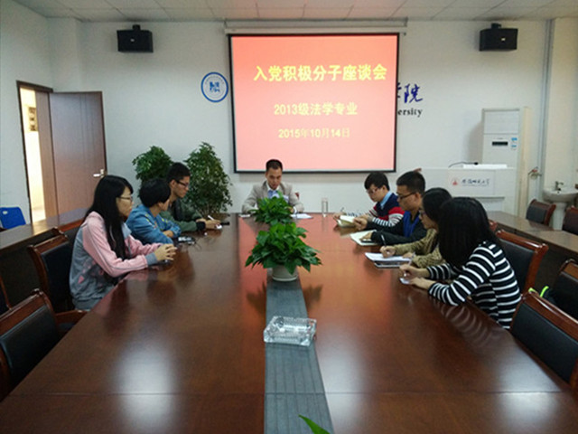 2015年10月14日下午四点半在bet36365路检测中心行政楼四楼会议室召开了入党积极分子座谈会。班级入党积极分子高晓晨、孟冉君、曹红、黄世凯、张浩、桂笑丹、张学森、王华婕八位同学参会。会议由陈兴宇老师的主持。