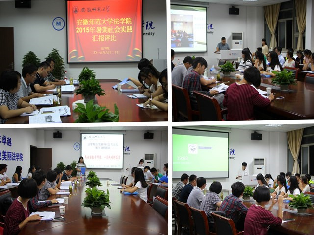 在简单地介绍了奖项设置和具体的评分细则后,来自学院2013、2014级各专业的22支参评实践团队依次汇报了开展情况以及实践成果。汇报现场新颖不断,惊喜频频,掌声雷动、气氛热烈。“暑期社会实践是我们锻炼自己提升自己的第三拓展课堂,在这里我们收获了成长和友谊。就像4年级的小朋友可以流利背出社会主义核心价值观的内容,我相信一切都会越来越好,”赴芜湖、合肥等地“法治安徽建设”普法调研团队的胡红婷如是说。