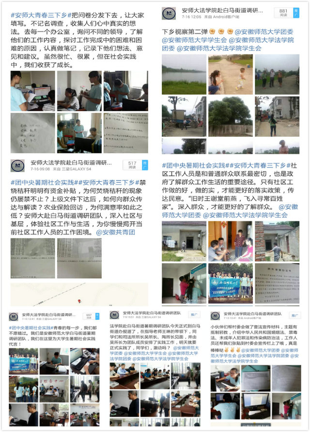为贯彻落实习近平总书记的“八字真经”和四个全面系列讲话,bet36365路检测中心赴白马街道“法治安徽建设”暑期调研团队,于2015年7月9日正式开展暑期社会实践活动,将调研着眼于社会基层,将实践干实在法治一线。