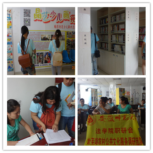 在陶辛镇综合文化站,队员们发现这里的文化设施齐全许多,且有专人管理。接待员向我们介绍,这里的工作人员都是通过招考的方式进来的,暑期村中农家书屋到此借书量也很大。结束访谈后,调研团队在炎炎的烈日下进行着问卷调查,虽然也遇到不顺利,但居民们的淳朴和热情是我们最大的感动。“我家也有小孩,他们有一天也会向你们一样实践,这是好事。”这些简朴的话语是我们热情的源泉。