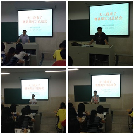 会议尹始,陈银珠老师介绍了班会内容和目的,随后由暑期实习四组组长古藤、夏新臣、马洪梅、丁庭威分别作了实习总结;再次,陈老师先播放了一段关于大学生毕业遗憾的视频,引出本学期班级的“一个中心,两个基本点”,以学习为中心,学好专业课,巩固以往所学知识,继续阅读名著和开展学术沙龙,鼓励发表学术论文,明确本科毕业去向;坚持体育锻炼,要求组织班级体育活动,坚持做有益身心的事情;合理参加素质拓展活动锻炼,把握全面发展与重点方向。本学期开始,陈老师将对每位同学进行 “个别化指导”,增强全班同学学习能力。