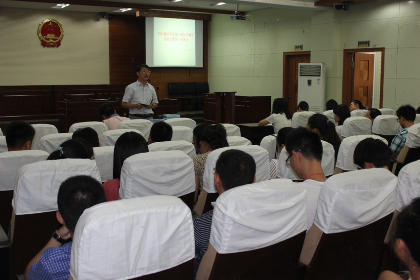 bet36365路检测中心2015级研究生新生第一次班会于9月11日上午10时在模拟法庭准时召开。出席本次班会的有院分管科研和研究生培养工作的严宏副院长、院分管研究生思想政治教育工作的组织员何源章、新生辅导员姚远老师以及2015级全体研究生新生。