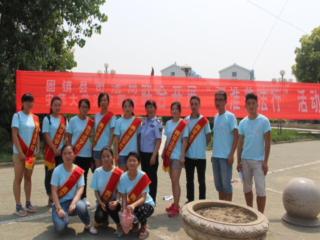 为了普法活动的顺利进行,团队队长张林晗已在活动开始之前就与固镇县司法行政局取得联系。进而,此次活动由蚌埠团队与固镇县司法行政局联合举办,并得到了固镇县人口和计划生育委员会、人力资源和社会保障局、司法行政局、公安局、检察院、行政执法局、人大常委会法制工作委员会的协助支持。