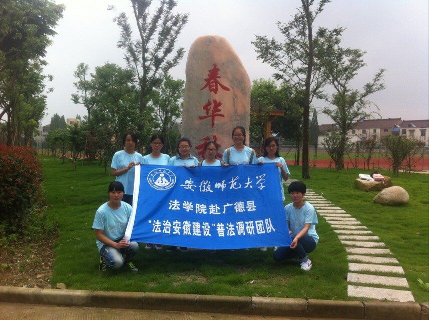 为全面落实安徽省委,省政府《关于加快推进法制安徽建设的意见》的通知,以及党的十八大精神,2015年7月9日,由13位同学组成的bet36365路检测中心“法治安徽”建设赴广德普法调研暑期社会实践团队正式启动。
