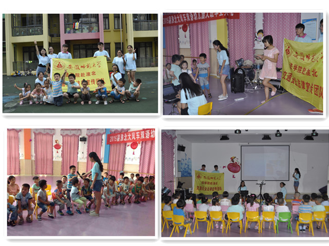下午两点刚过,团队成员不惧夏日炎热,早早带上给小朋友们准备的小礼物到达幼儿园活动现场。成员间密切配合、共同协作、有条不紊地将活动现场布置完毕。