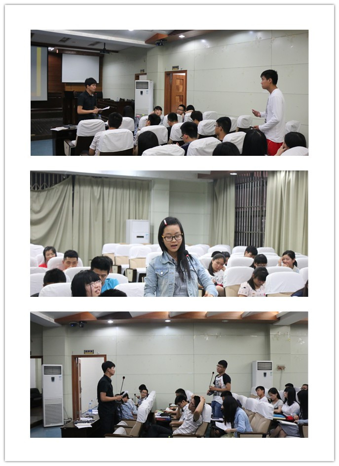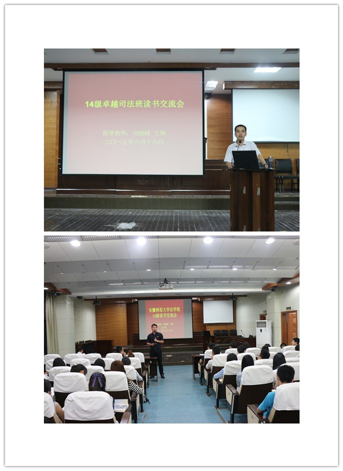 2015年6月16日晚,2014级卓越司法班在模拟法庭举办了本学期最后一次读书交流讨论会,到会指导老师有bet36365路检测中心硕士生导师、副教授刘晓峰,14级法学专业辅导员王琳,其他班级的部分同学也作为观众观摩了此次交流会。