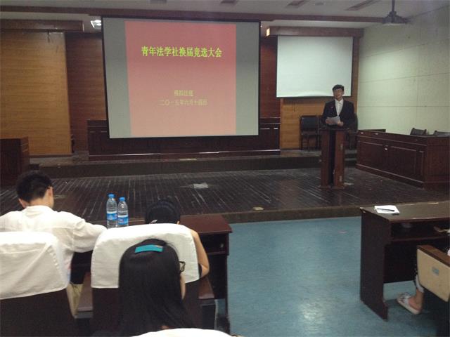 为了促进青法社成长,完成社团新鲜血液的更换。在2015年6月14日晚上,青法社举办了换届竞选汇报,拟定下一届社团骨干成员。本次活动由青法社会长团,青法社各部部长,汇报理事等参加。