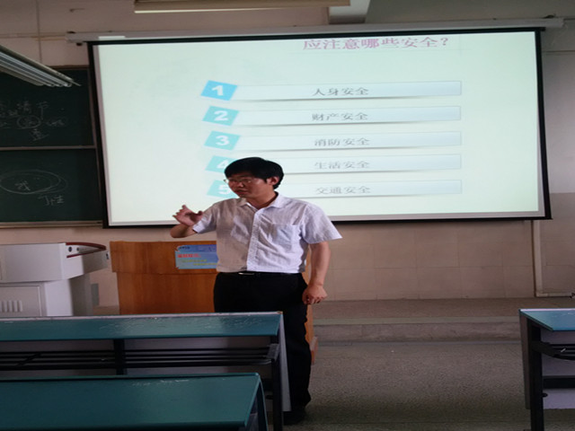 本次班会由14行政管理专业的辅导员郭敬东老师主持。班会的内容包括:人身安全,财产安全,消防安全,生活安全,交通安全。郭老师先向学生说明要注意的安全问题。并向我们说了一些案列事件,以此告诉同学们安全防范防什么。然后,郭老师向我们介绍文明建设的相关内容。强调“讲文明,懂礼貌,促和谐”是每个大学生应具备的基本素质。要求同学们争做文明学生,创建文明校园。最后郭老师对同学们接下来的学习工作做了一些安排。