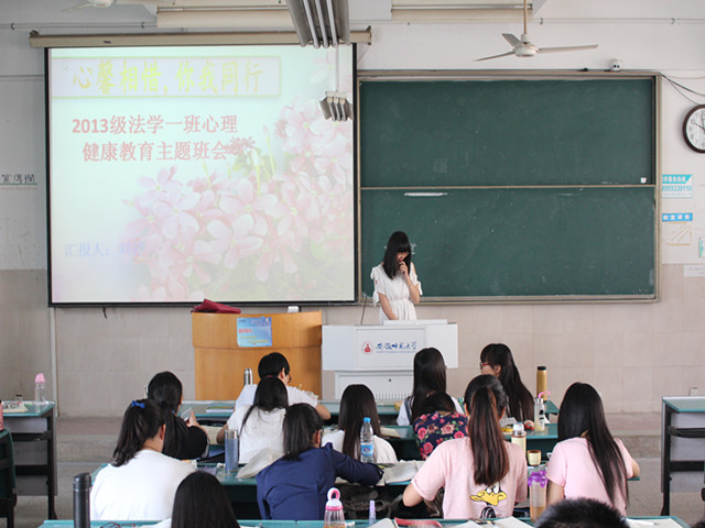在5月25日“全国大学生心理健康日”之际,为关注同学们的心理健康问题,促进同学们健康成长,13法学一班于2015年5月19日上午在教室2020304开展了以“关注心理健康教育”为主题的班会。此次班会由心理健康委员刘婷同学主持。