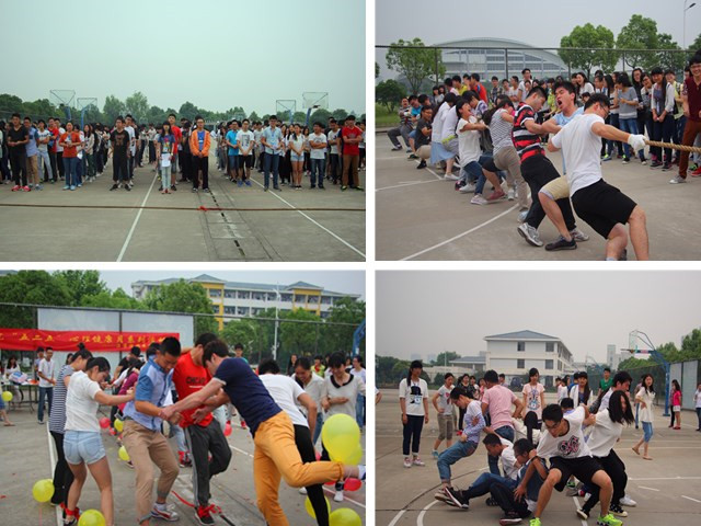 在活动开始前,屈光峰给同学们作开场发言。此次活动秉承“我运动,我快乐,我健康”的理念,希望能够培养同学们良好的心态,以积极乐观的态度面对以后的学习。此次运动会分为三个活动,分别是“齐心协力--拔河比赛”、“绚丽青春--两人三足踩气球”和“齐步跳跃--挽手深蹲起后集体跳长绳”。第一场拔河比赛中,各个班级同学们使劲浑身力气,拼命往后拉绳,丝毫不敢松懈。在激烈的角逐之后,13级法学二班获得了第一名。随后开展的踩气球比赛中,竞争更为激烈。同学们都在比赛中找到了乐趣,收获了微笑。13级法学二班再次在比赛中赢得了桂冠。两场比赛过后,同学们兴趣只增不减,最后一场跳长绳活动开始了。整齐划一的跳跃,奋力向上的身姿,掷地有声的长绳为这轮比赛增添了一抹风采。13级法学二班再次赢得比赛第一名。