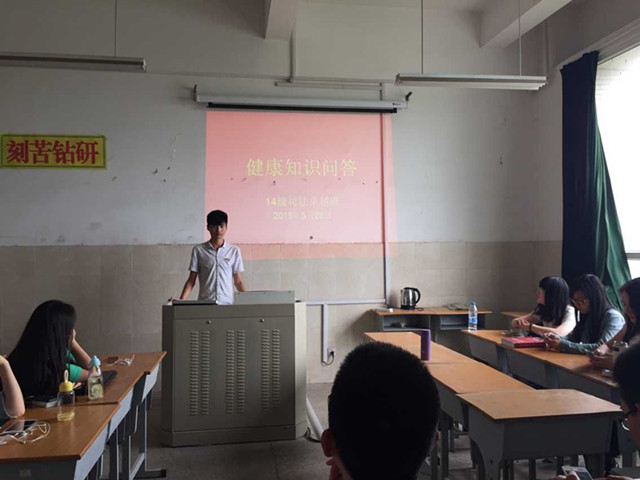 为丰富大学生校园文化生活,普及大学生心理健康知识,增强大学生的心理保健意识和心理调试能力,促进大学生全面协调发展,同时也为了更好地响应“5.25”大学生心理健康日宣传活动号召,5月23日下午三点三十分,以“学习心理知识,呵护心理健康”为主题的心理知识竞赛在2014级卓越司法班自习教室举行,14卓越司法全体同学参加。