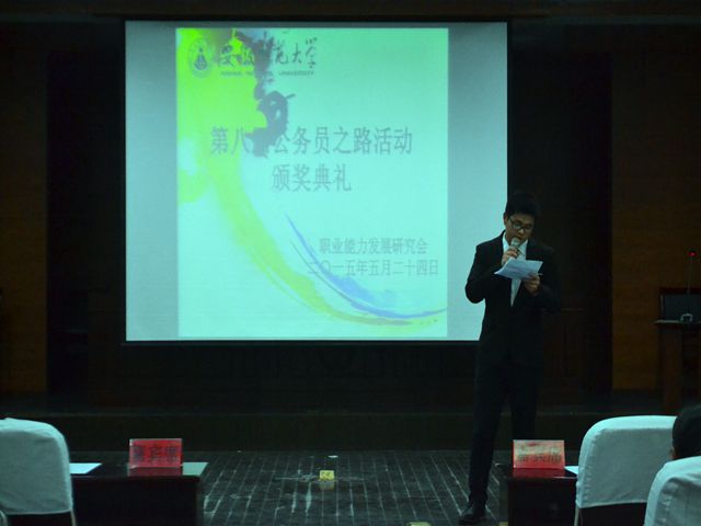 随着颁奖仪式的结束“公务员之路”系列活动也告一段落。公务员之路”系列活动从3月中下旬的前期宣传工作到4月28日的笔试再到5月10号的面试最后是5月24日的颁奖仪式。