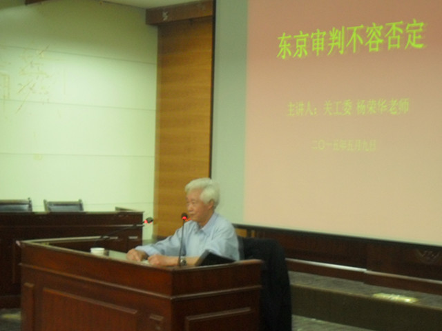 为了纪念世界反法西斯战争胜利70周年,同时为了加强同学们的和平意识和爱国热情,5月9日下午由校关工委杨荣华老师为14级同学进行了主题为“东京审判不容否定”的讲座。