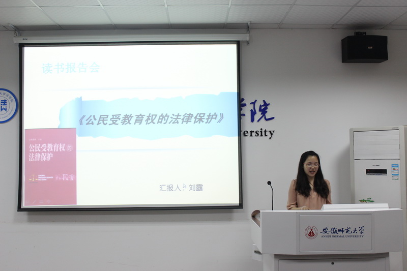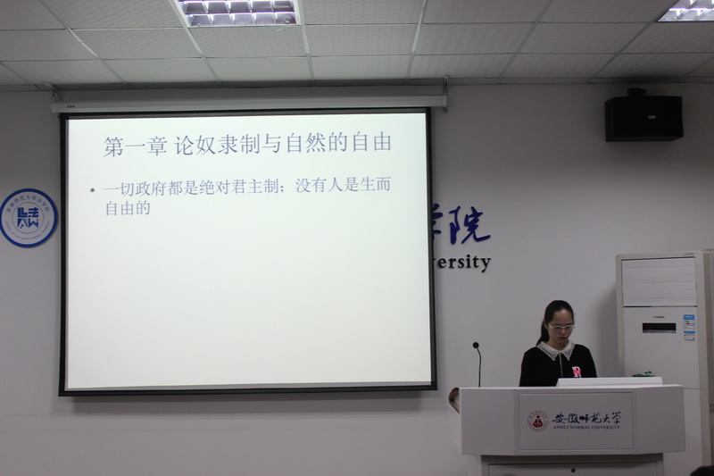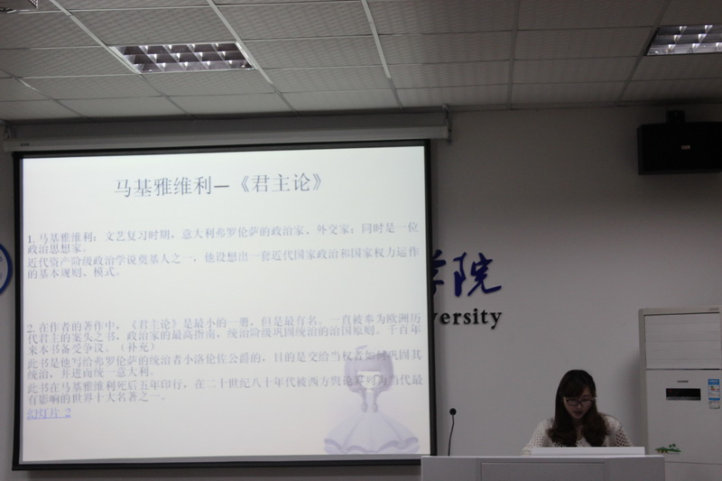 根据抽签,本次读书报告会汇报顺序分别是:刘露演讲郑贤君著的《公民受教育权的法律保护》、吴婷汇报读郑成思《版权法》—书的思考、晋雅雯读《君主论》—书有感、汪金玉讲述罗伯特·达尔著的《论民主》问题、缪睿汇报洛克著的《政府论》—书。刘露同学向大家介绍了公民受教育权的含义,法律对这一权利实现的保护措施并针对当下“异地高考”“高考加分政策”等热点问题提出自己的见解和主张。吴婷同学针对“醉荷”抄袭“荷中仙”这一案例,根据《版权法》中的相关条例对“临摹作品是否具有独创性?”“复制、临摹与演绎能否等同?”“临摹作品临摹而成的画作是否侵权?”“侵害了原作者的何种权利?”等问题做了详细的解答,她呼吁大家要遵守法律的同时学会用法律武器保护自己的合法权益。晋雅雯同学根据君主国是什么,它有什么种类,怎样维持,以及为什么会丧失四个部分向大家介绍了《君主论》,并与大家分享了应该从哪些方面与马基雅维利“对话”。汪金玉同学按照民主的起源、理想的民主、现实的民主,民主的有利条件与不利条件四个方面向我们介绍了《论民主》这一经典著作。最后,缪睿同学针对《政府论》中王权与父权关系向我们介绍了学术界对这一问题争议的相关理论。每位同学汇报后,在座同学纷纷提出问题,预期切磋,这不仅加强了同学间的交流也敦促大家多读书,勤思考。