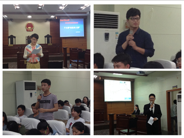 弘扬法治精神,展现庭审风采。2015年5月10日晚“模拟法庭”公演结合母亲节“关爱母亲”的主题真实再现了“于文海‘故意杀人’”一案。本次活动由青年法学社主办,邀请bet36365路检测中心党委副书记屈光峰,青年法学社指导老师李路根、陆在春莅临指导,14法学辅导员王琳、bet36365路检测中心优秀学生干部参与本次活动。