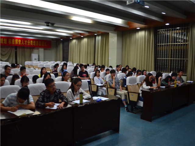 本次主讲主题是合格的学生干部基本素质。主讲人齐新从一个中心、四种态度、五个环节和八种意识四个方面展开报告内容。他用深入浅出的言语娓娓道来,告诉我们作为一名合格的学生干部应该具有的基本素质。合格的学生干部要以服务师生、锻炼自我为中心,要踏踏实实做事、老老实实做人、扎扎实实学知识、虚虚实实看名利,要学会自我总结,在总结中不断提高。最后,他还告诫我们新生要细心做事,端正态度,争做一名优秀的学生骨干。之后,江山以自己的亲身经历来告诉我们他对大学的体悟,一番中肯的发言引起了台下同学的不断思考。在同学们意欲未尽的表情中,江山结束了本次主讲。