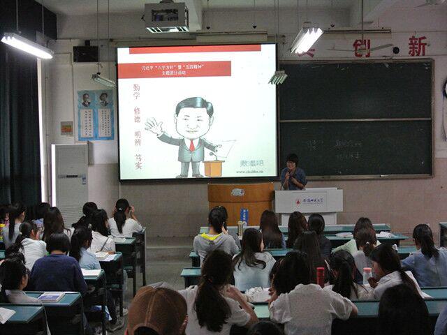 此次班会主要分为“走进八字真经”和“八字感悟大家谈”两个环节,将八字真经的宣讲与同学们的讨论相结合,将“八字精神”与学生的日常学习生活相结合,使得同学们对八字真经有一个深入的了解,对“五四精神”有一个更好的感悟,激励着同学们修身养德、奋发向上,营造出了良好的学习氛围。(文/冯玲 图/卢婷婷)
