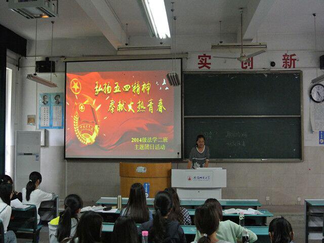“为祖国勤学修德、以实践明辨笃实”,青少年作为最富有朝气和蓬勃理想的一代,也寄予了人们实现中华民族伟大复兴梦的期望。为了更好地弘扬“五四精神”、深入学习习近平总书记提出的“勤学、修德、明辨、笃实”八字真经的深刻内涵,14级法学二班于5月5日在教学楼举办了“践行八字真经、弘扬五四精神”的主题团日活动。