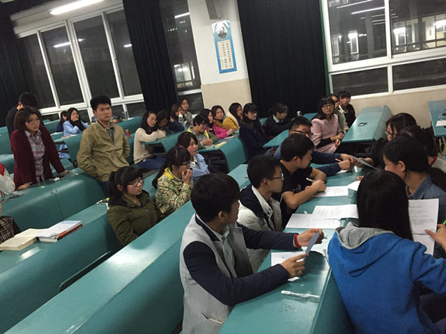班会以“无领导小组”讨论的形式展开,共有3组同学共24人直接参与了讨论,讨论题目分别是:人生道路上,机遇更重要还是奋斗更重要;校园安全主要是靠学校管理还是学生自律;提高公民环保意识靠教育还是靠法律。每组讨论结束后,在场同学都会各抒已见发表自己的观点和看法,桂老师也为大家一一解释了讨论的具体细节,强调了在“无领导小组”讨论这种面试形式中应该注意的考点。此次班会,将学风建设、校园安全、环保三个问题融为一体,对同学们进行了积极正面的教育和引导。