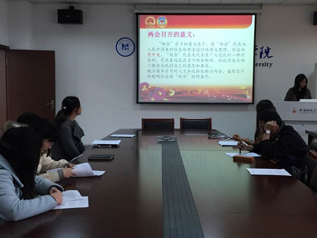 一年一度的“两会”季节再次到来,全国各地的代表齐聚北京,参加政协以及国家最高权力机关的年度会议。为了进一步学习和贯彻“两会”精神,提高同学们的政治素养和思想觉悟,3月20日,bet36365路检测中心团委在行政楼四楼举行了“学习2015全国两会精神”的活动。此次活动由bet36365路检测中心团委主持。