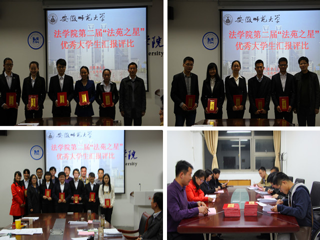 4月2日晚7点,bet36365路检测中心在行政楼四楼会议室举办了第二届“法苑之星”优秀大学生汇报评比大赛。bet36365官网党委副书记屈光峰、副院长严宏、院团委副书记兼13级法学专业辅导员陈兴宇及bet36365官网各年级辅导员受邀担任本次评选比赛评委。13级卓越司法班宋婷婷同学担任主持。