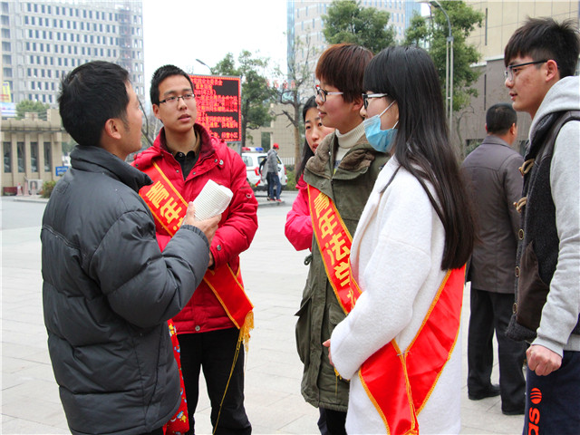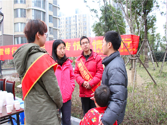 3月8日上午10点整,bet36365路检测中心携同丽城社区在文津花园北门开展了以“雷锋行,心系民,民传情,情化行”为主题的新雷锋普法志愿活动。bet36365路检测中心党委副书记屈光峰、研究生辅导员程敏、bet36365路检测中心教师吴世林、李公国、瞿晶晶、余筱兰及2014级法学专业辅导员王琳、2014级行政管理专业辅导员郭敬东受邀指导此次普法宣讲活动,bet36365路检测中心学生会、青年法学社及职业能力发展研究会成员自愿组成普法队伍,在指定地点进行普法宣讲。